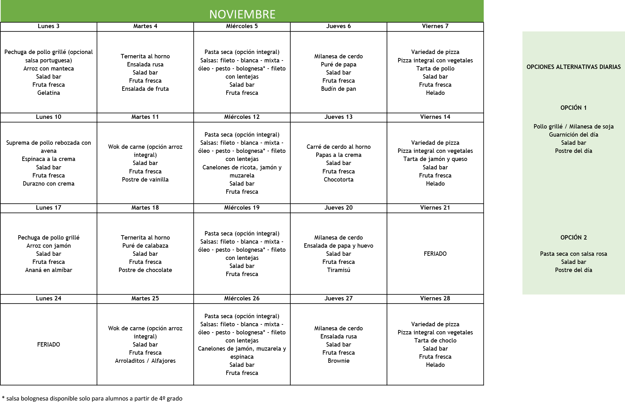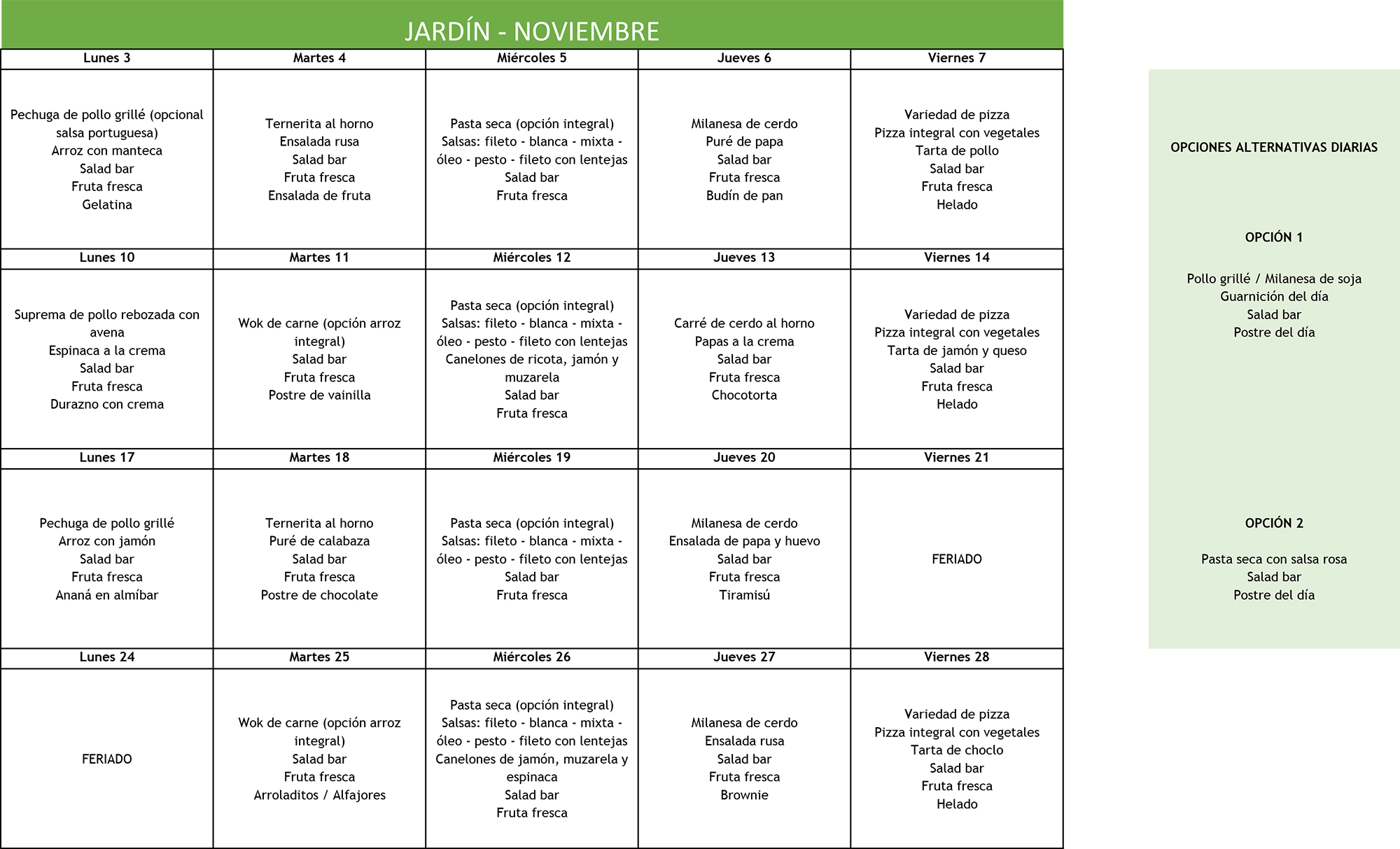 El menú está supervisado por la Lic. María Celeste Rahe, MN 7016.